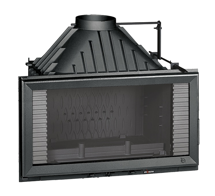 A line of decorative hearths intended to be mounted in a casing. Only the front door with its clever and original design remains visible, providing a subdued, elegant surrounding in which to view the flames.