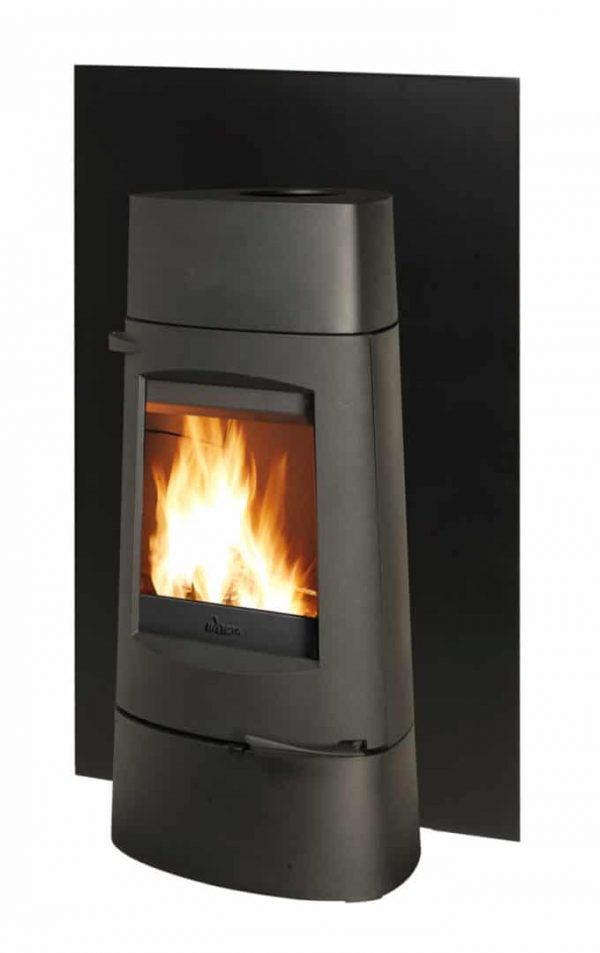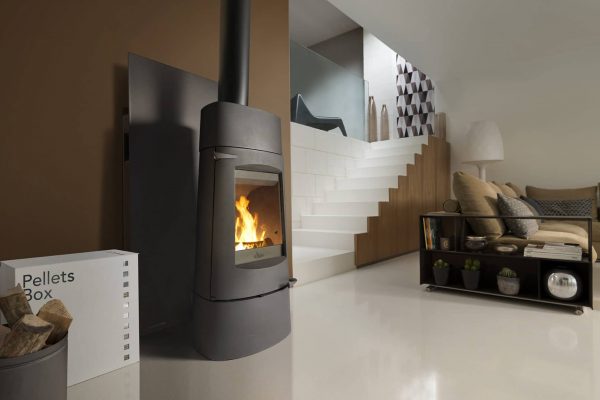 The Plug-IN technology is based on placing the technical portion of the stove in a clever wall module. This module has a high capacity (22 kg) reservoir that offers extended operating life (up to 31 hours). This wall module offers an additional technical feature. It acts as a shield to reduce the safe distance from the combustible materials. It can therefore be placed directly on the wall. Finally, it has a backlit control panel and conceals an accessory for filling the reservoir.