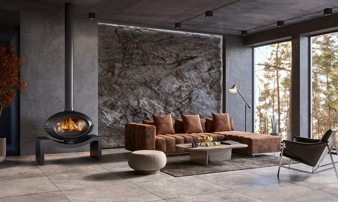 /    /  Cast iron and steel wood burning stoves  /  Brio on 1m Bench – Cast Iron Stove – Direct Air Supply