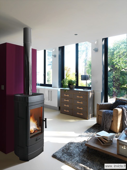 The ultramodern Gormont wood stove takes up minimal space and provides maximum comfort. It warms and brightens all interior spaces.