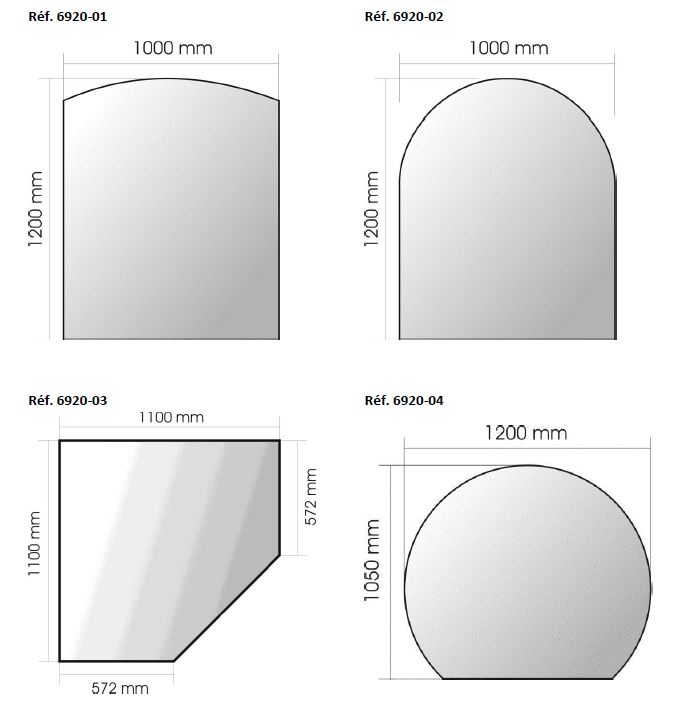 4 models to place under your wood burning stove. ESG safety glass, 6 mm thickness with 20 mm bevel